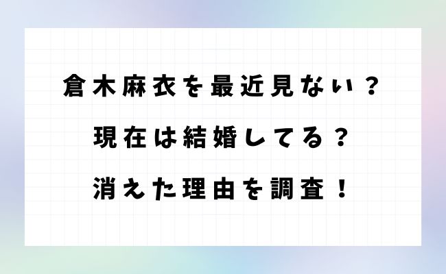 今回は、倉木麻衣さんを最近見ない理由や現在の活動、そして結婚の噂や“消えた”と囁かれる背景までをわかりやすく紹介します。