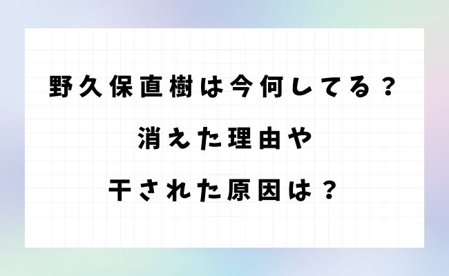 野久保直樹が「消えた」「干された」と言われるようになった理由