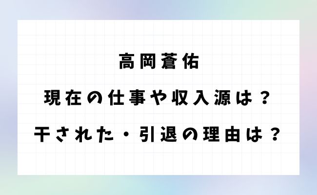 この記事では、高岡蒼佑さんの現在の活動内容から、干された理由・引退の経緯・復帰の可能性までを詳しく紹介します。
